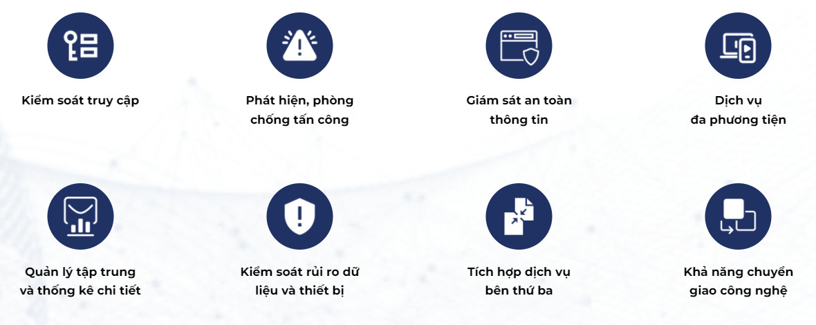 - Các giải pháp an toàn, bảo mật thông tin như NGFWaaS, DLP, ANTI-RANSOMWARE và EDR với nhiều thuật toán, giải pháp được tăng tốc trên công nghệ FPGA.
